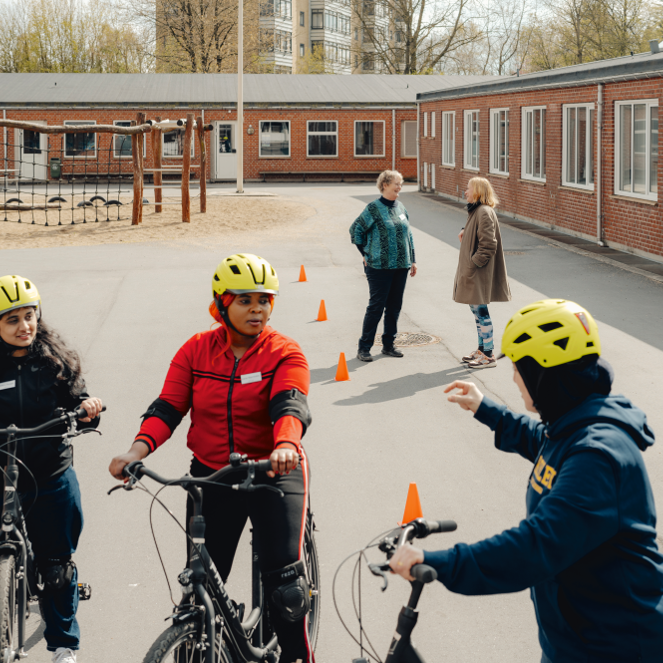 Hver onsdag mødes Janne Britt Povlsen og hendes frivillige med en gruppe af folk med flygtninge- og indvandrerbaggrund. De mødes på Novaskolen i Vejle. Gruppen kommer for at lære at cykle. Aktiviteten startede for to år siden, da en flok kvinder henvendte sig til Vejle Kommune og Katrine Kratholm, der er boligsocial koordinator for den Boligsociale Helhedsplan i kommunen: