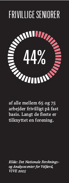 Både Poul og Margrethe er eksempler på en tendens, der ses i hele Danmark: Flere og flere bliver frivillige, når de er oppe i årene. Siden 2020 er andelen af befolkningen, som arbejder frivilligt, steget markant fra 36 % til 40 %.