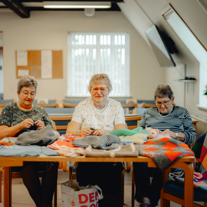 “Det kan nogle gange være svært at finde på, hvad man lige skal gå i gang med at strikke, men så har vi hinanden at snakke med, og jeg har også opskrifter fra nørklerprogrammet, som vi kan finde inspiration i,” siger Hanne Sørensen.