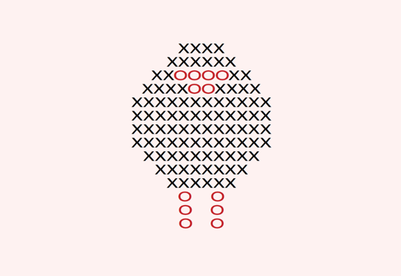 Diagram: Mønster over 15 m (X = hvid, O = sort)