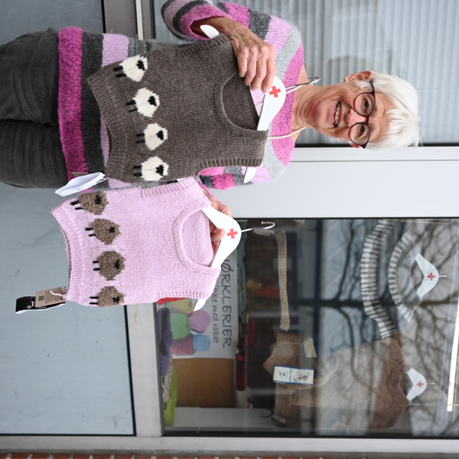 ”Jeg tænkte, at det måtte jeg kunne lave. Jeg er til enkle opskrifter, så jeg prøvede at lave én, der var meget simpel at følge, og det viste sig heldigvis at være en succes,” fortæller hun, og det ses også i genbrugsbutikken i Ølby, der ligger lidt uden for Køge. Fordi vesten blev en succes.